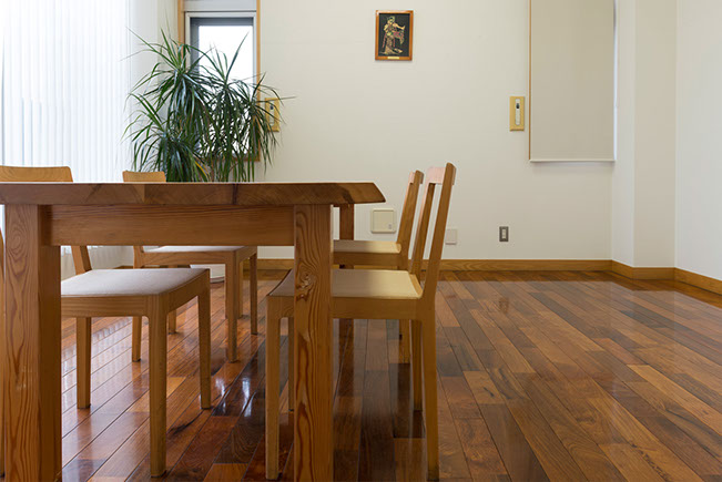 重硬ですが加工はしやすく、表面は光沢があり、磨くと一層美しさが増します。高級家具や楽器への利用頻度も高く、フローリング材の中でも最高級品として広く使われています。