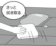 汚れの種類によって処理方法が異なります。まずから拭きで除去を試み、それでも落ちない場合は、以下の方法をお試しください。
