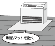 木質床材にホットカーペット・温風ヒーター・ストーブなどの熱が直接当たりますと、目隙や表面割れを起こすおそれがありますので避けてください。これらを使用する場合は断熱性の高いマットを敷いてください。